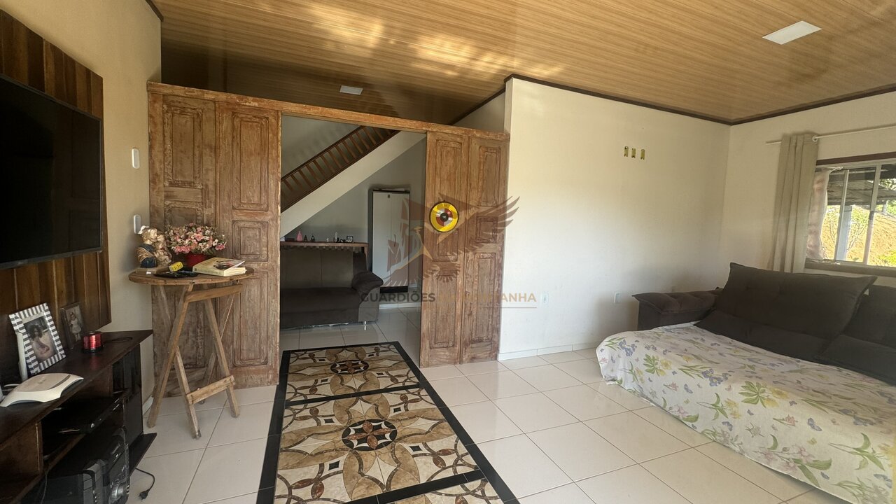 Casa de laje 140m² com 2 quartos, sala ampla, cozinha anexa a copa, banheiro social grande, área gourmet com cozinha montada, fogão a lenha, churrasqueira e uma varanda com uma linda vista panorâmica.