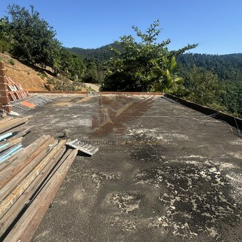 Terraço grande livre com estrutura pra fazer mais uma casa na parte superior.