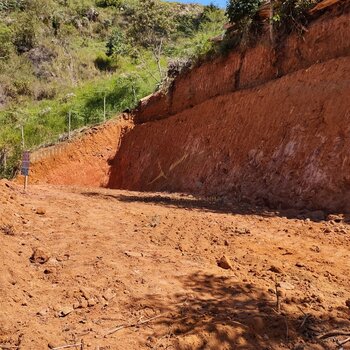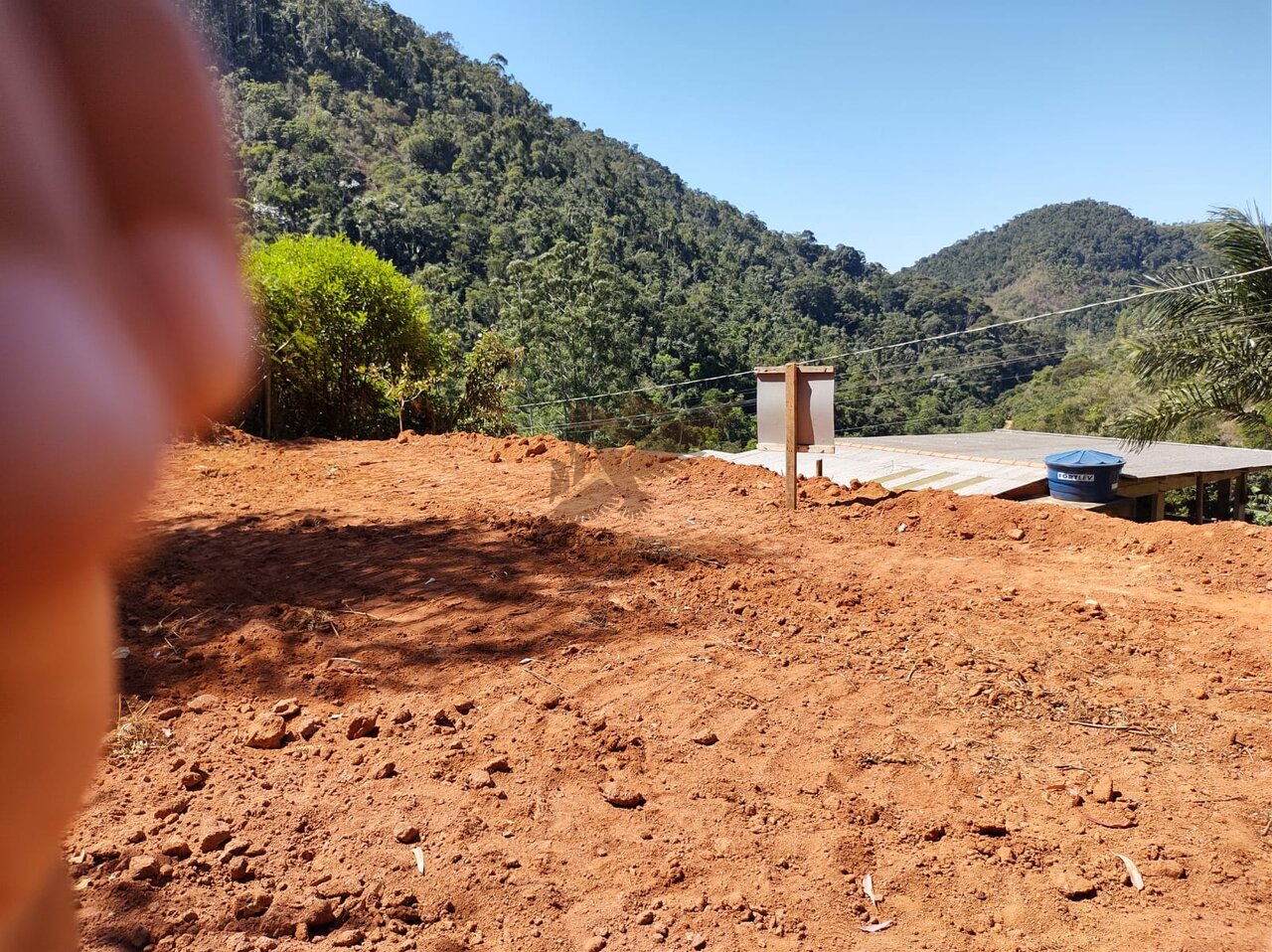 Lote já com platô pronto pra construir com acesso a água da Cesan e energia.