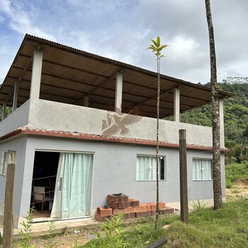 Casa com 2 quartos, sala, cozinha, banheiro social, área de serviço e um terraço com possibilidade de fazer mais quartos.