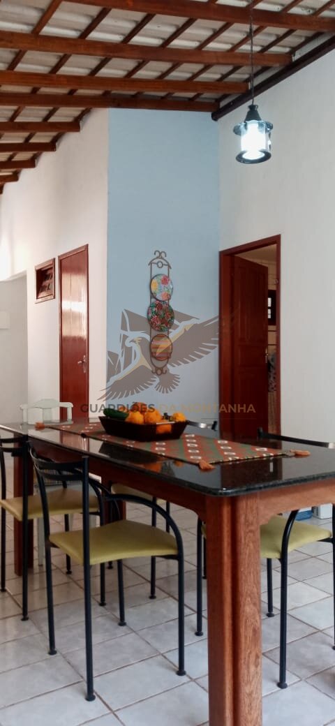 Casa duplex com 6 quartos sendo 1 suíte, 2 banheiros sociais, sala com dois ambientes de jantar e estar, cozinha e varanda.