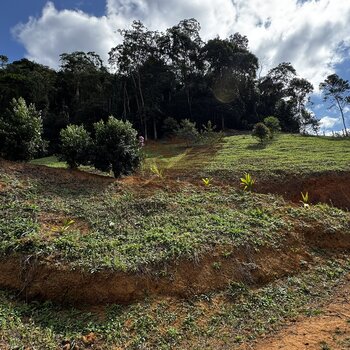 O terreno conta com 3.000 m², já com platô pronto para construir, com possibilidade de ampliação, ideal para erguer sua casa de campo ou chalé. Possui pomar formado, água de nascente, energia elétrica, além de um pequeno lago compartilhado, com a possibilidade de criar um lago exclusivo dentro da propriedade.